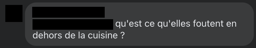 Madame Rap le relaie sur ses réseaux le 4 janvier, après les vacances de Noël. Très rapidement, sur notre page Facebook, d’affreux commentaires font irruption. Le problème ? Saaphyra, Veemie, Tehila Ora, Lil So, Lady Land, Lena Morgane, Mina West et Mely rappent alors qu’en tant que femmes, leur place serait à la cuisine. Ben voyons.