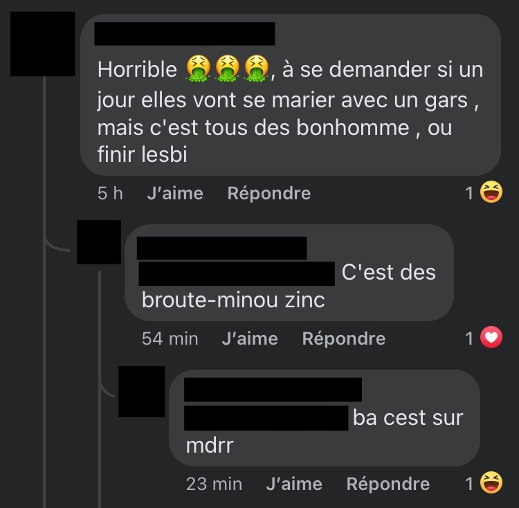 Ces relents passéistes seraient risibles s’ils n’étaient pas accompagnés de véritables insultes sexistes et lesbophobes, assorties de racisme, grossophobie ou slut-shaming.